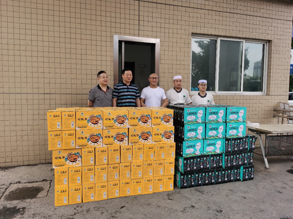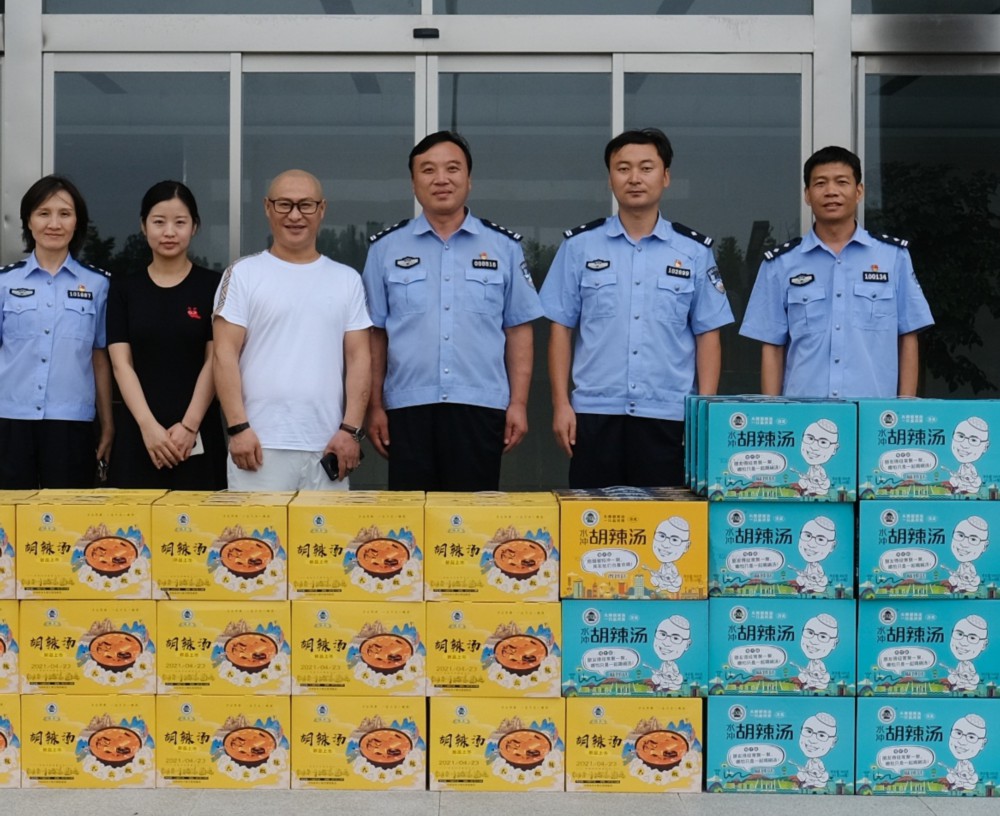 图为2021年7月22日姚有才为郑州市惠济区公安分局捐赠即食胡辣汤。