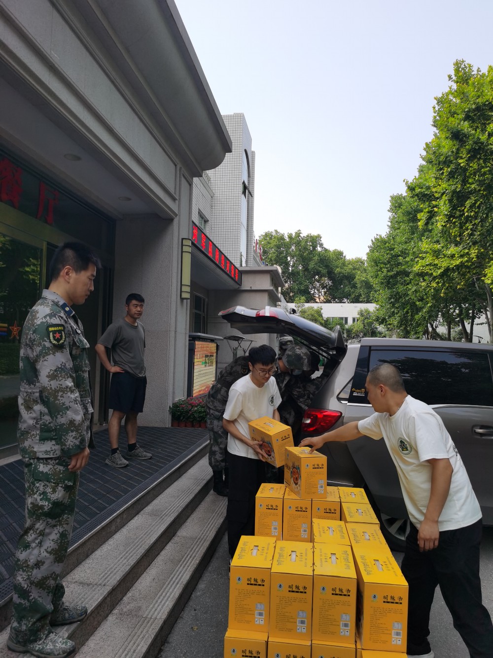 图为2021年7月24日姚有才为中国人民解放军河南省军区捐赠即食胡辣汤。