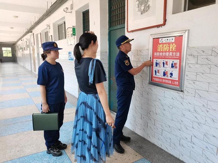 开学期间,大队还成立了专项检查组,实地查看各所学校的办公室、教室、食堂、厨房、学生宿舍、实验室、微机室、图书室、配电室(箱)等库室,检查消防安全设施设备是否符合安全标准规范,消防设施设备完好、检查记录规范;疏散通道、疏散楼梯或安全出口是否畅通,安全出口的位置、数量是否符合要求;电动车充电、大功率电器、油烟管道等电气火灾防控工作开展情况。