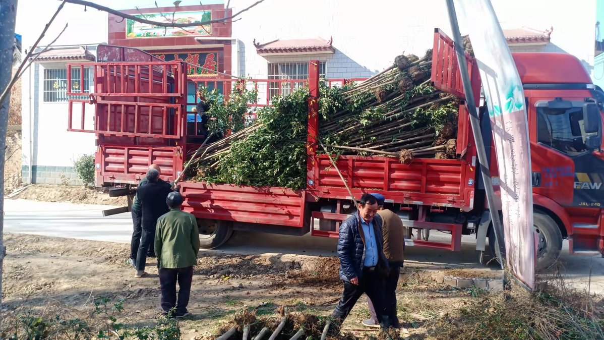 一棵棵鲜活的树苗从卡车上被工作人员搬下来,新鲜的泥土包裹在树苗的根部,他们被种植在了一条条道路的旁边,抬眼望去,一片绿色,俨然成了秋后的一条条绿色长廊。这就是开封市通许县四所楼镇国土绿化植树种树的场景。