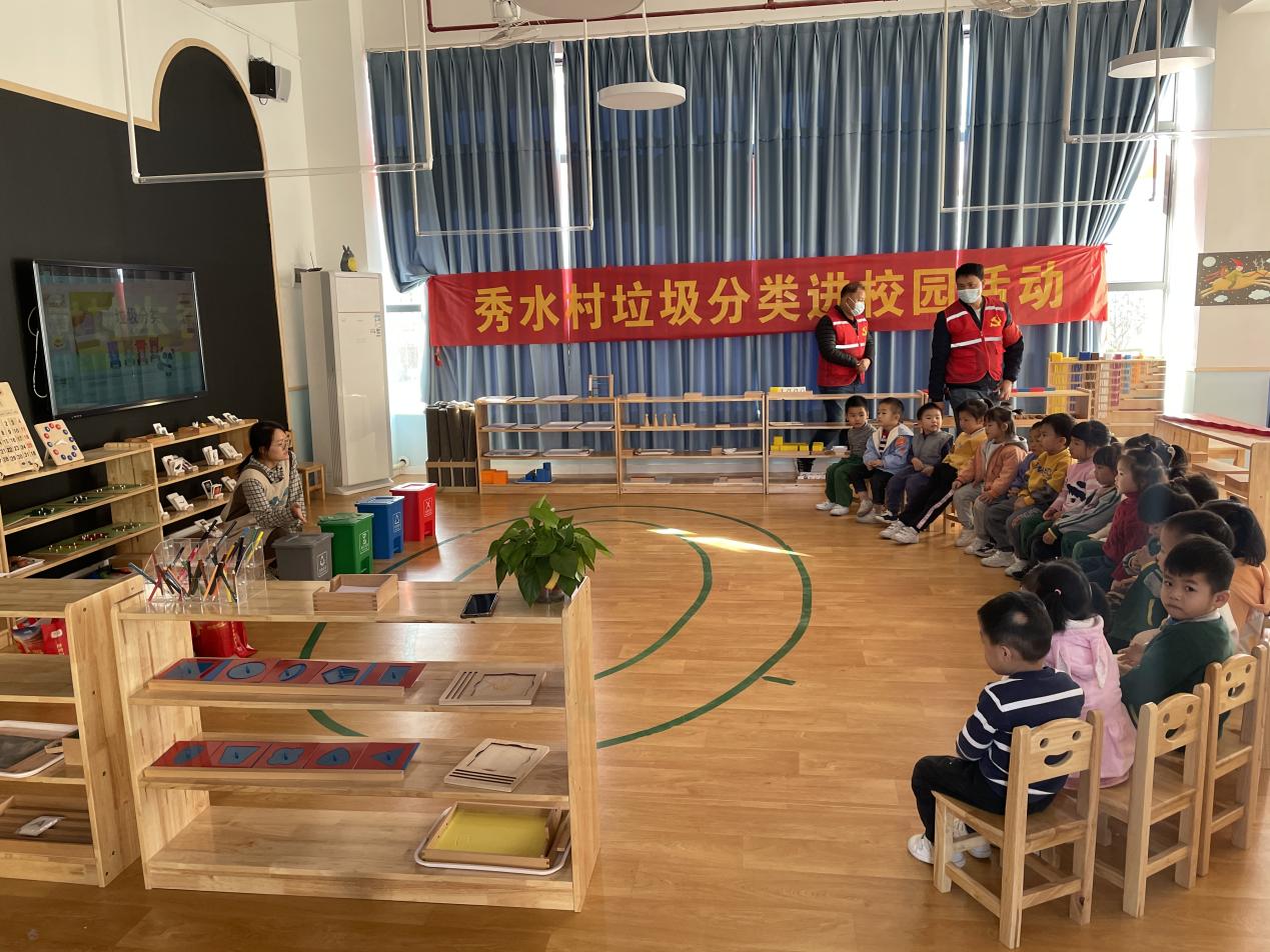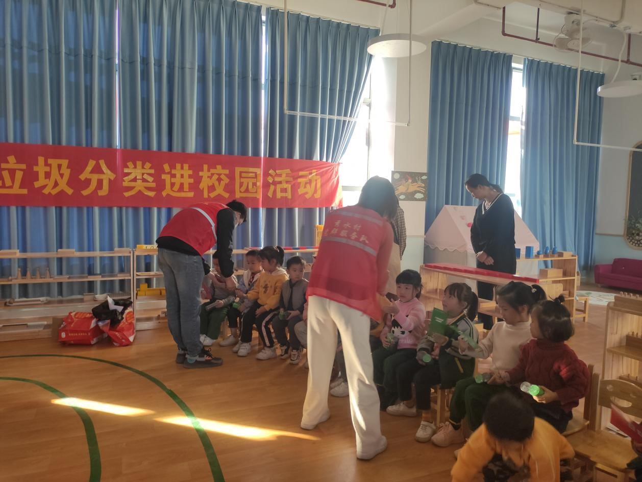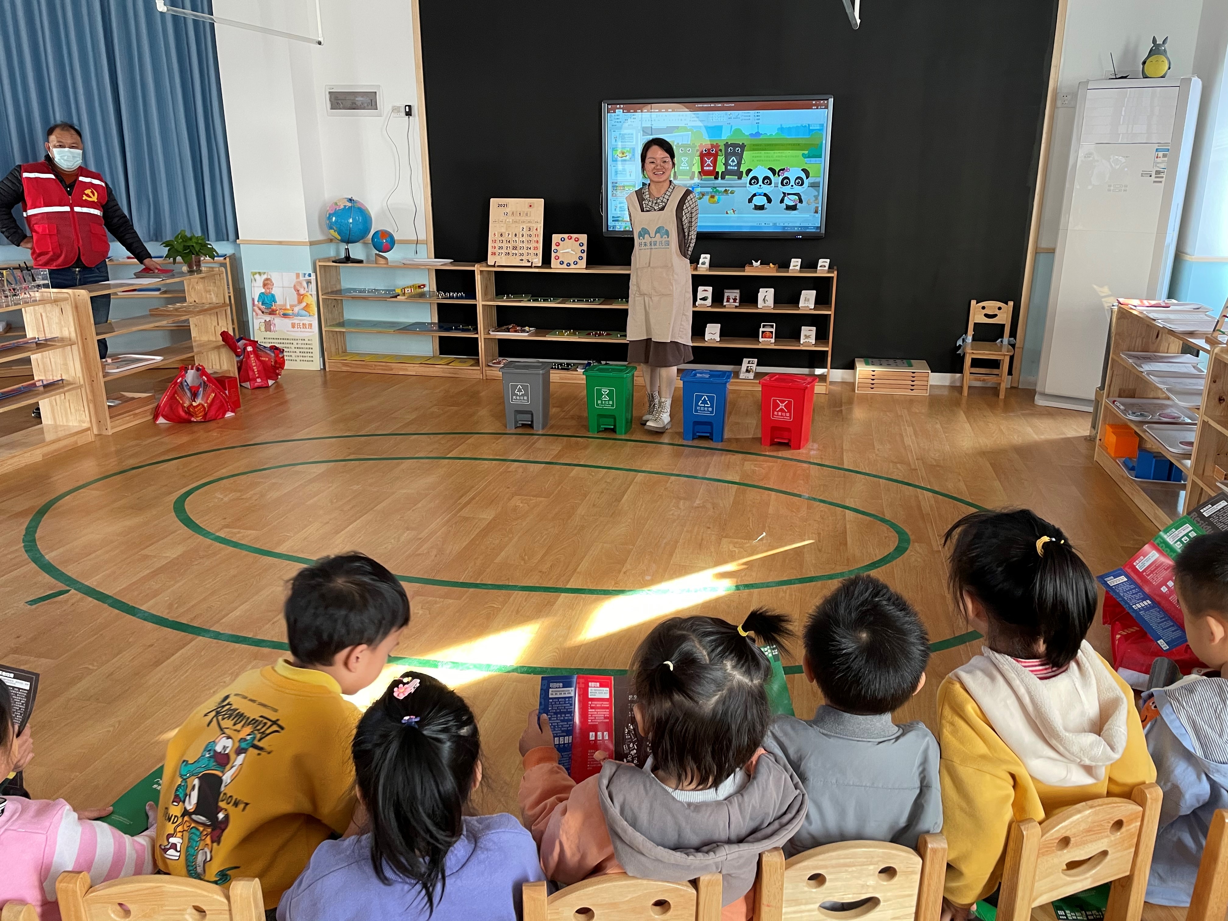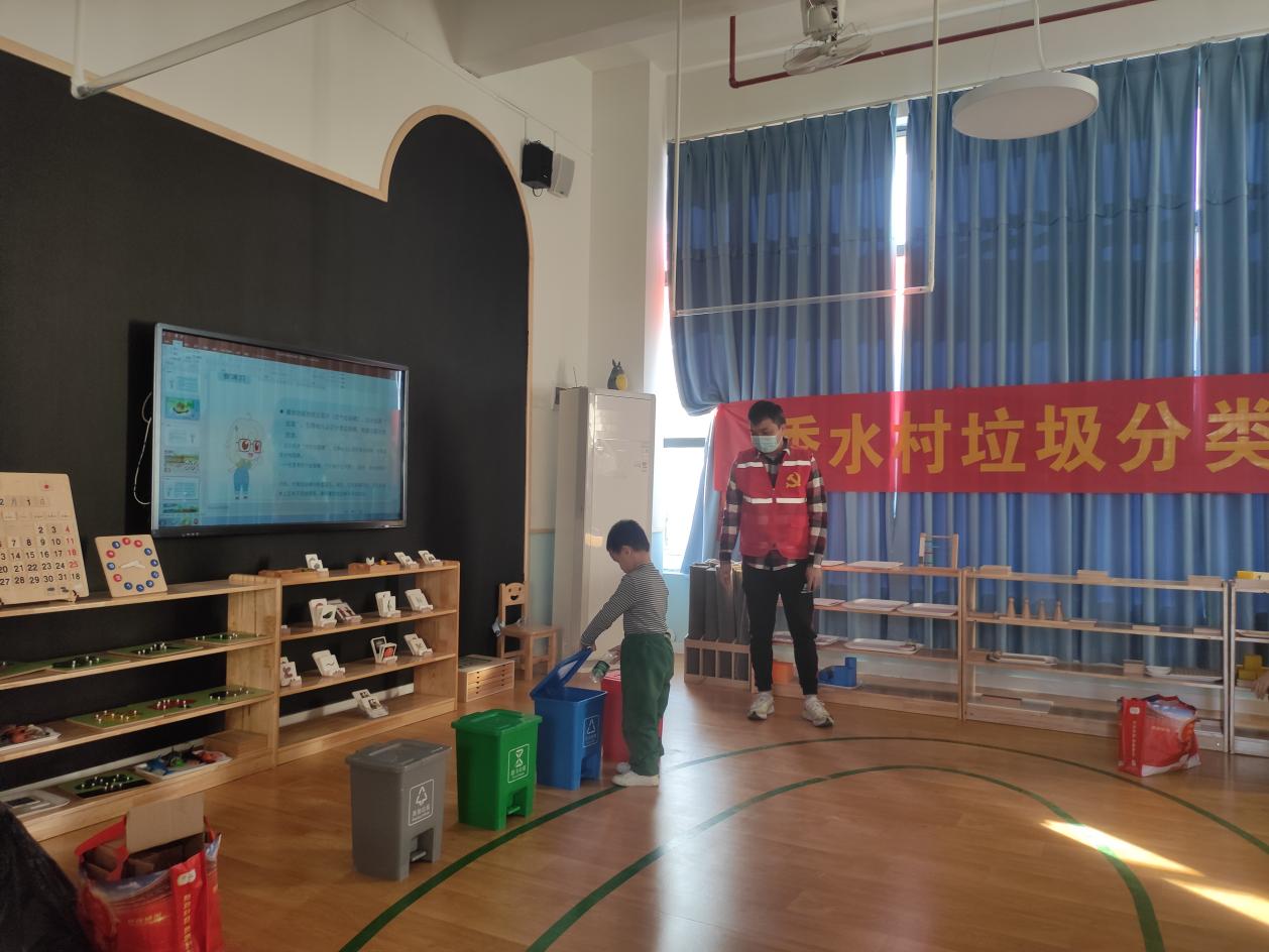 广州好未来蒙氏幼儿园是今年新创办,以全智体全面发展为办学理念。广州好未来蒙氏幼儿园老师精心准备,利用“垃圾分类”小课堂和播放垃圾分类小视频等方式,向学生们讲述垃圾分类基本知识。小可爱们都听得很认真,学会了垃圾分类的标志、简单垃圾分类知识等。老师还现场教学现场问答,小可爱们积极思考,踊跃回答,答对将得到一朵小红花。现场还设置垃圾分类投放小游戏,并现场发放塑料瓶、餐巾纸等物品,让小可爱们尝试投放,秀水村党员志愿者耐心指导,及时帮小朋友纠正,在寓教于乐之间,让小可爱们学会垃圾分类知识,自觉回家做家庭的分类者和督导者,树立节约资源、保护环境的意识。