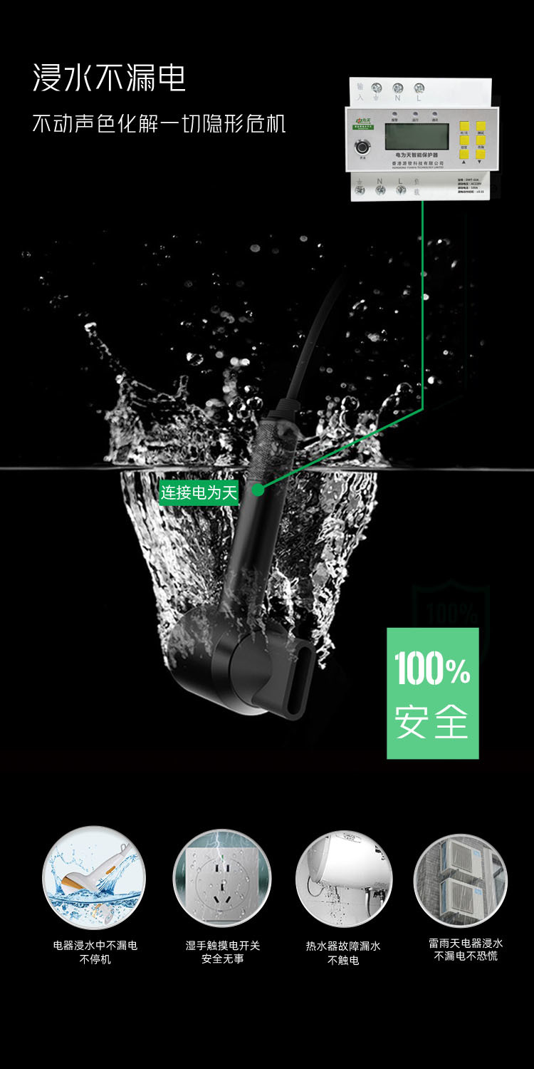 在日常生活中,“电为天”可以在误接触裸漏、浸水、老化危险电器时保护接触者,安装完成后,能自动切断过温过压过流等异常电路,防止起火隐患。此外,它还具有防雷击、防浪涌、防静电等多重功能,在保证电路稳定工作的同时,提高电器使用寿命。