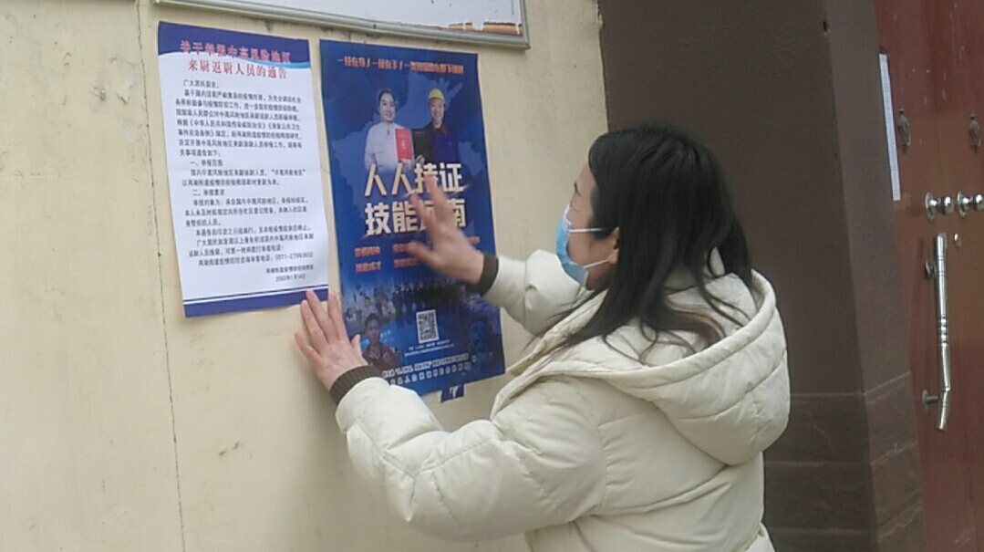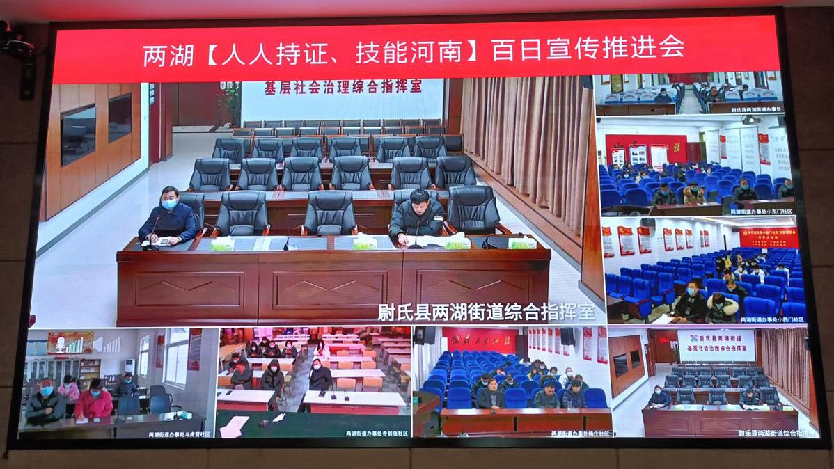 结合当前防控形势,专兼职网格员线上线下齐发力,用居民群众看得懂、听得进、易接受的方式将“人人持证 技能河南”相关惠民政策传达到各社区各网格的家家户户,激发广大居民参与的积极性。一是在微信朋友圈、小区业主群、网格微信群中轮番推送“奋进两湖”微信公众号关于“人人持证 技能河南”的相关链接;二是在街道路口等显著位置悬挂防控横幅,张贴宣传海报,面对面向居民宣传优惠政策,打通宣传的“最后一米”;三是在两湖街道及5个社区便民服务大厅的LED显示屏上滚动宣传。