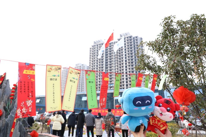 活动在锦程花园项目景观区进行,现场大红灯笼高高挂、谜语联、福字贴、“牛气冲天”福娃、蓝宝等,氛围浓厚,职工们三五成群欢声笑语游玩,一边参与活动,一边拿走了旺旺大礼包、香酥饼干、礼盒坚果等奖品,各个喜笑颜开。