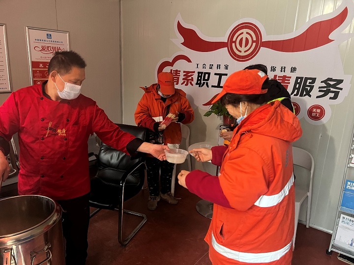 锦程花园项目工会、科创园项目工会利用爱心驿站为环卫工人、农民工们一大早送去热乎乎的汤圆,让工友们感受到了家的温暖,纷纷在线表示感谢,部分工友也纷纷表示在今后的工作中会继续努力工作,干出精品工程。