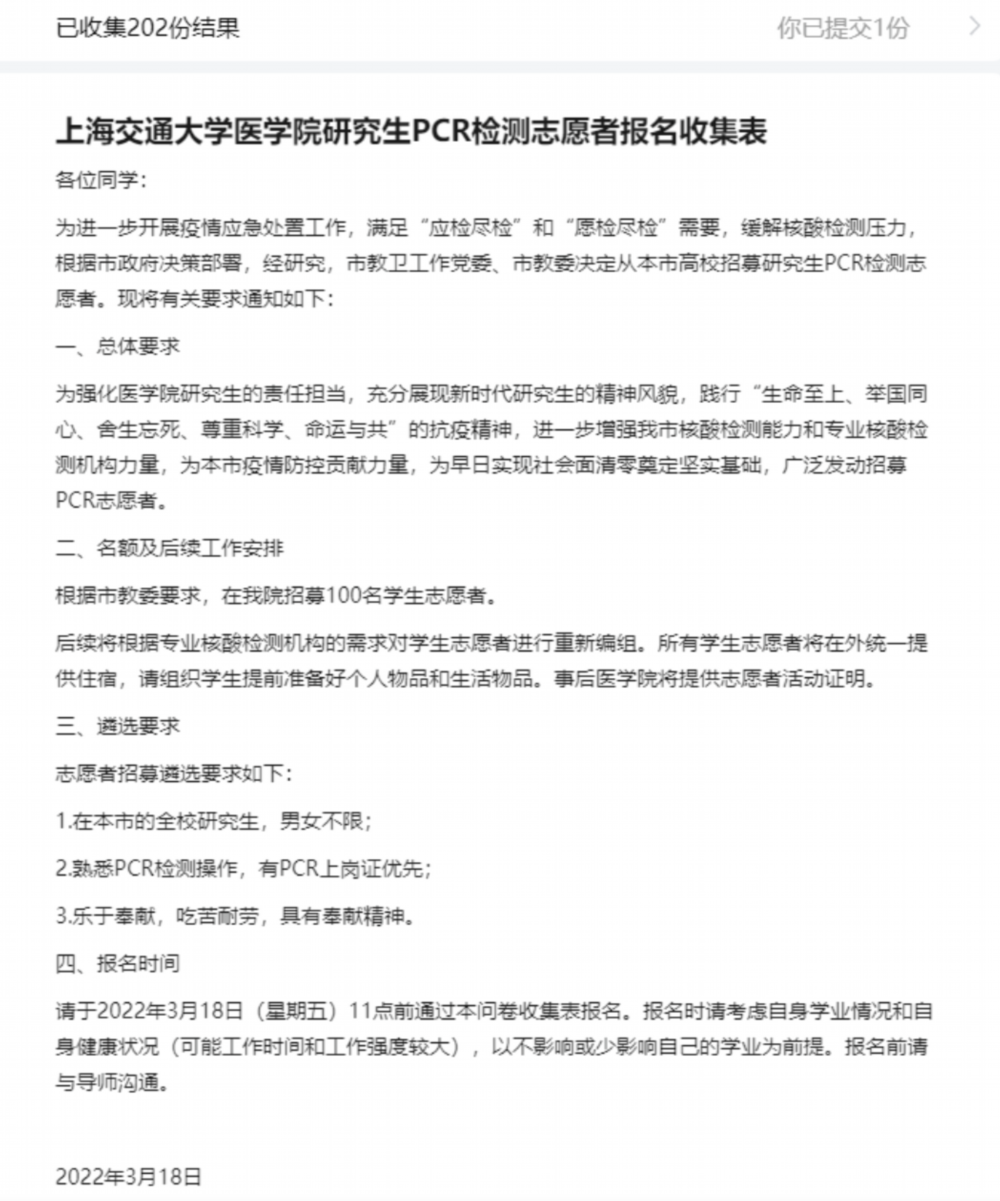 招募大学生PCR志愿者