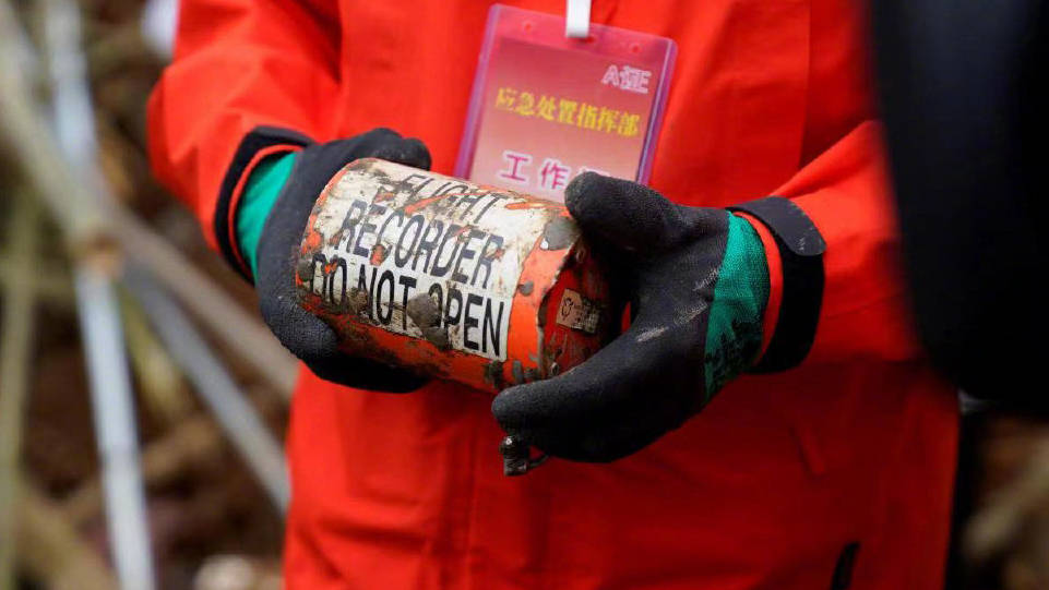 27日上午9点20分左右,消防救援人员在技术组指定的重点区域深度搜寻,人工挖掘出一橙色圆柱状物体,现场勘查的民航事故调查人员发现后立即取出,经确认为飞行数据记录器存储单元。发现位置在距主要撞击点以东约40米的坡面,地表下深约1.5米处。经检查,记录器其他部分损毁严重,数据存储单元外观较为完好。目前,该记录器已送往专业实验室进行译码工作。