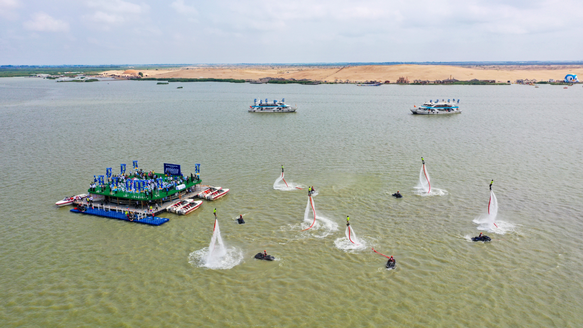 本次赛事共吸引了四川、北京、深圳、宁波、武汉等地区的摩托艇高手在此对决。作为国家级水上品牌赛事,第一次走进西北,百余艘摩托艇齐聚沙湖,在沙漠旁、贺兰山下上演了一场场水上的速度与激情。各位水上运动健儿中流击水、浪遏飞舟,展现了挑战极限、超越自我的竞技精神,为大家奉上了一场场激情四射、精彩纷呈的视觉盛宴。
