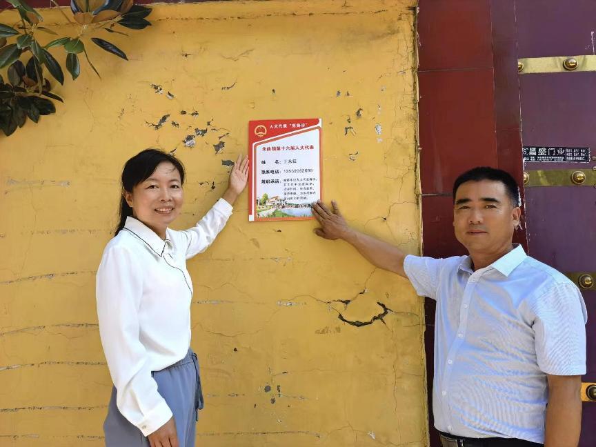为进一步密切人大代表与选民的联系、丰富代表履职内容、拓展履职代表范围、提升代表履职实效、打破代表履职的时间空间限制、更好地在闭会期间促进人大代表主动依法履职。7月11日,开封市尉氏县朱曲镇人大开展“亮身份 示承诺 做表率”的促履职活动,将人大代表身份公示在自家门口,身份牌上公布有代表的姓名、联系方式、职务、履职承诺及网上代表联络站扫码端口,以此打通代表联系群众的“最后一公里”。