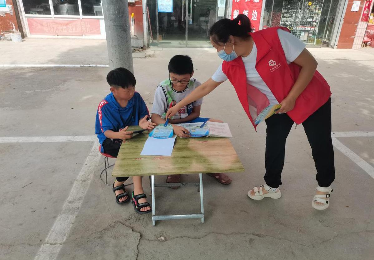 “小朋友,放暑假了可以跟小伙伴们在家附近玩,但是可千万别去池塘边、河边玩啊,也不要玩火柴打火机这些危险物品,要听家长和老师的话,注意个人安全,快快乐乐过假期,平平安安返校。”在陈庄村,村党支部书记、市人大代表李爱玲正带领五名身穿红色马甲的巾帼志愿者组成宣传小队,走街串巷发放安全知识宣传页,并向学生和家长宣传暑期安全知识,主要就中小学生假期消防安全、防溺水、防意外事故、防交通事故、用电安全等方面进行宣传教育,同时对如何避免火灾发生、如何火场逃生、燃气泄漏应急应对、夏季溺水急救及雷电急救、防诈骗等内容进行了详细解读,提醒学生注意假期安全,增强安全防范意识,为儿童度过一个安全、和谐、快乐的假期提供有力保障。