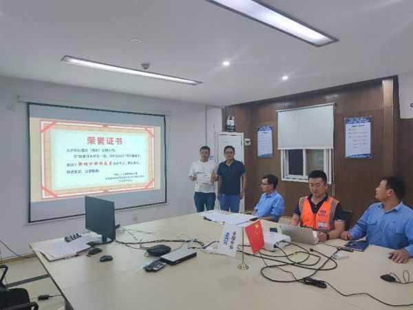 2022年9月7日,坝光市政项目组织各工区负责人召开工程周例会,对在劳动竞赛中表现突出的环坝路土建施工班组颁发荣誉证书,并以此为各工区树立榜样,激励他们树立积极参建,勇争第一的信心。