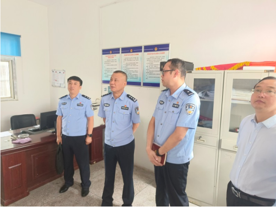 在平店派出所,岳备战重点检查了值班室、办案场所和办公区,对视频监控、巡逻防控、以及重点人员管控提出具体要求。随后,岳备战听取乡党委书记段文海、所长孙超关于改善派出所用房条件的汇报,并提出相关指导性意见。他指出,要科学合理地使用现有用房,尽力为同志们营造良好的工作环境。同时,要充分利用乡镇党委政府给予的支持,主动作为、乘势而上,全力推进四个规范化建设。