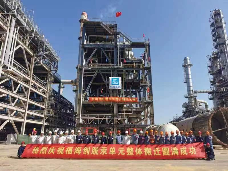 作为全国首例千吨级化工旧装置模块化施工的深度推广运用,本次脱汞单元改搬迁开创了化工旧装置整体模块化搬迁施工首创之举,受到了业主方、中建安装的高度重视。福海创总经理助理孙海涛,中建安装石化工程公司连云港中化大项目部总经理范杰,专务郭令喜,结构专家张菊芳,吊装专家张弘彪全程旁站,中建安装石化工程公司智程劳务全力以赴,抢抓施工节点,集聚合力,力保脱汞装置模块的顺利就位。