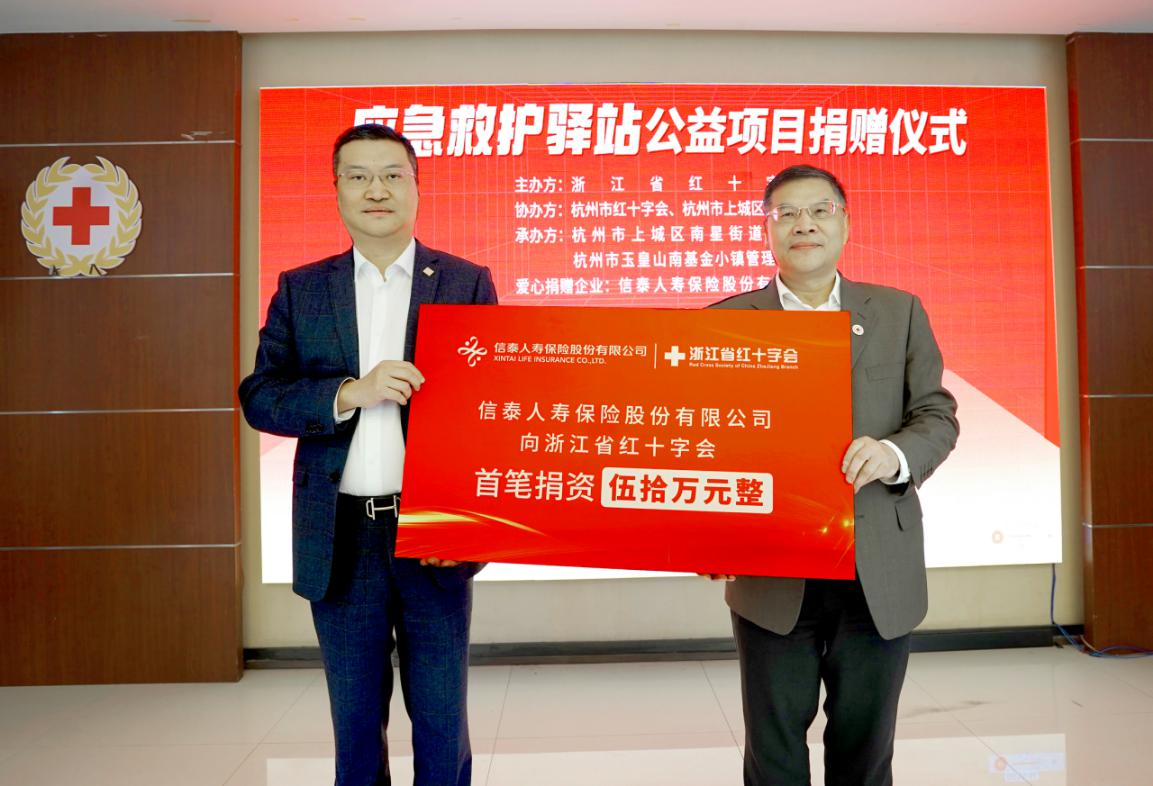 近日,信泰保险与浙江红会共同开展建设的“应急救护驿站”项目捐赠仪式在杭州顺利举办。浙江省红十字会党组成员、专职副会长黄元龙,上城区人民政府副区长、区红十字会会长孔德君,及省市区红十字会、上城区政府办、南星街道有关领导,信泰保险公司党委委员、浙江分公司总经理王晓明等出席捐赠仪式。