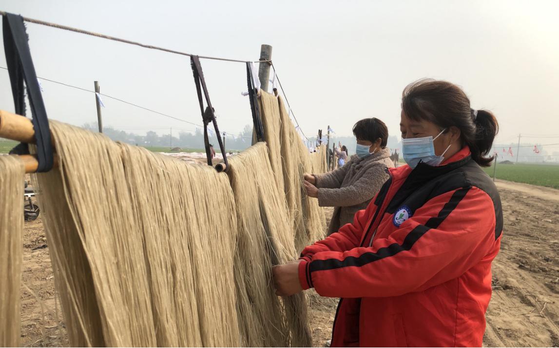 平城乡后屯村永发粉条厂负责人孙新中说:“我们村发展手工粉条加工有近百年的历史,2008年我建了一个粉条加工厂,工人大概有30人,每天下粉条的(师傅)可收入300元左右,晾晒的有150元左右,下一步扩大生产规模,把更多的剩余劳动力安排到这里打工,通过粉条产业发展带领群众增收致富,助力乡村振兴。”(图片由崔景民、徐照恒授权使用)