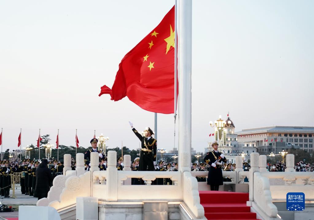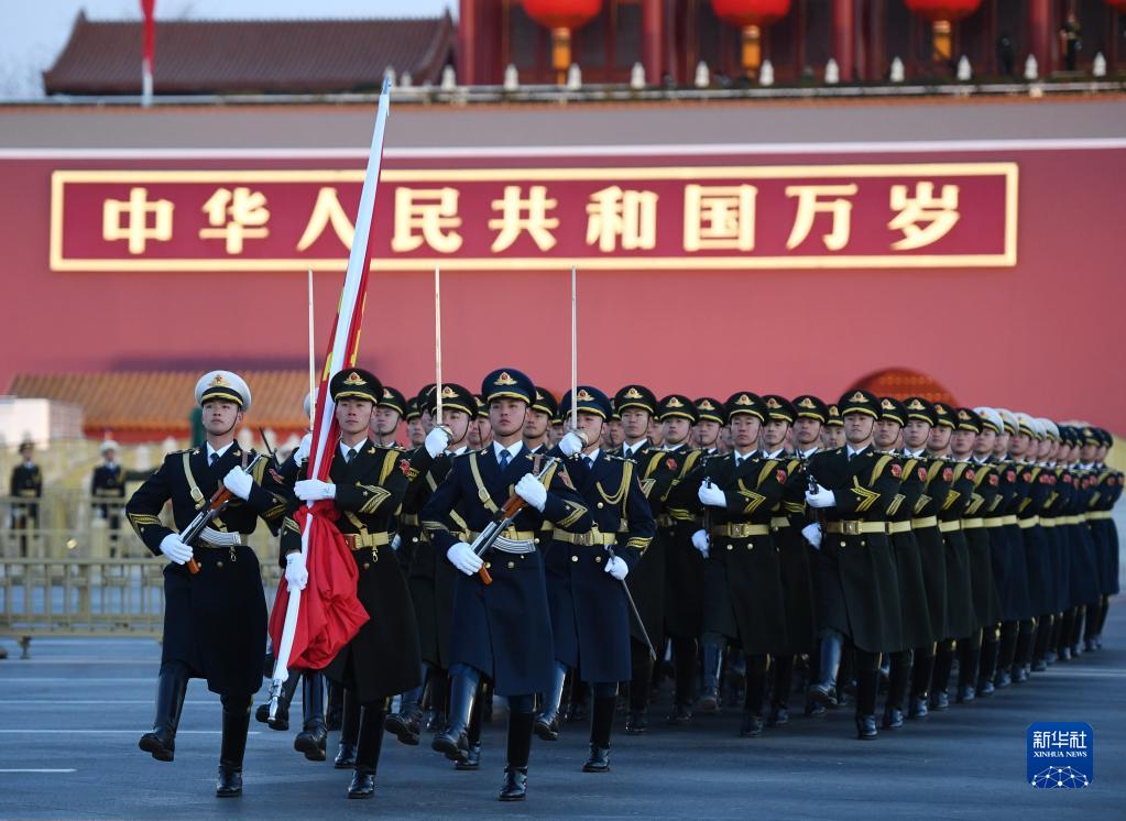 1月1日晨,北京天安门广场举行隆重的升国旗仪式。新华社记者 张晨霖 摄