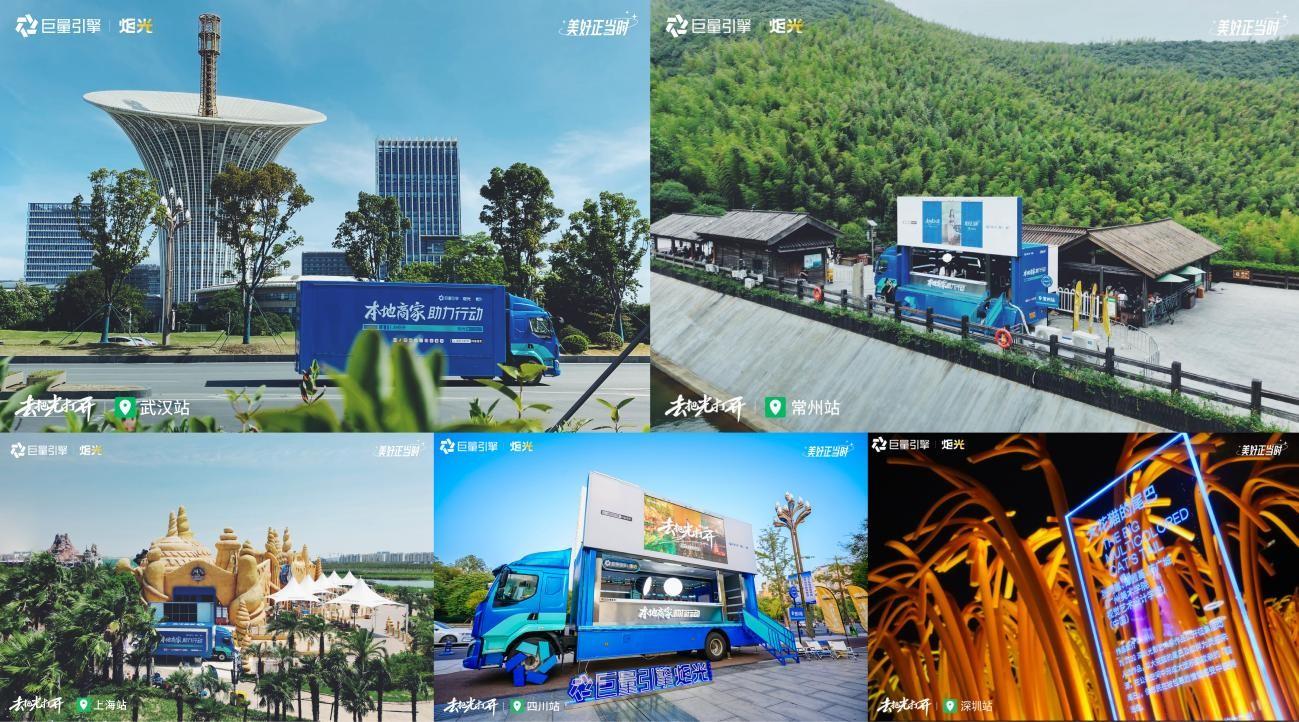 一辆蓝色的“炬光直播车”穿梭在全国各地,跨越上万公里,走进武汉、常州、上海、内江、深圳、宜宾、泸州、北京、海口、澳门等十余座城市,实地探访上海海昌公园、东方盐城湖、天目湖、“酒城”泸州、“甜城”内江、九寨沟等城市商家。