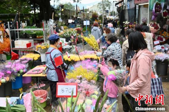 五颜六色的年花吸引市民选购。(李志华 摄)