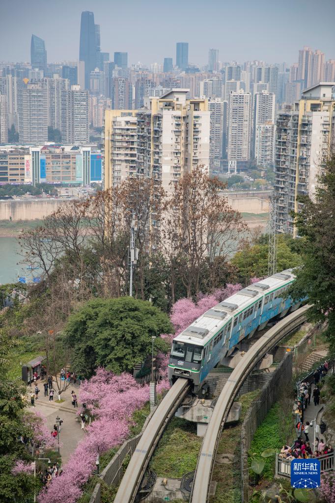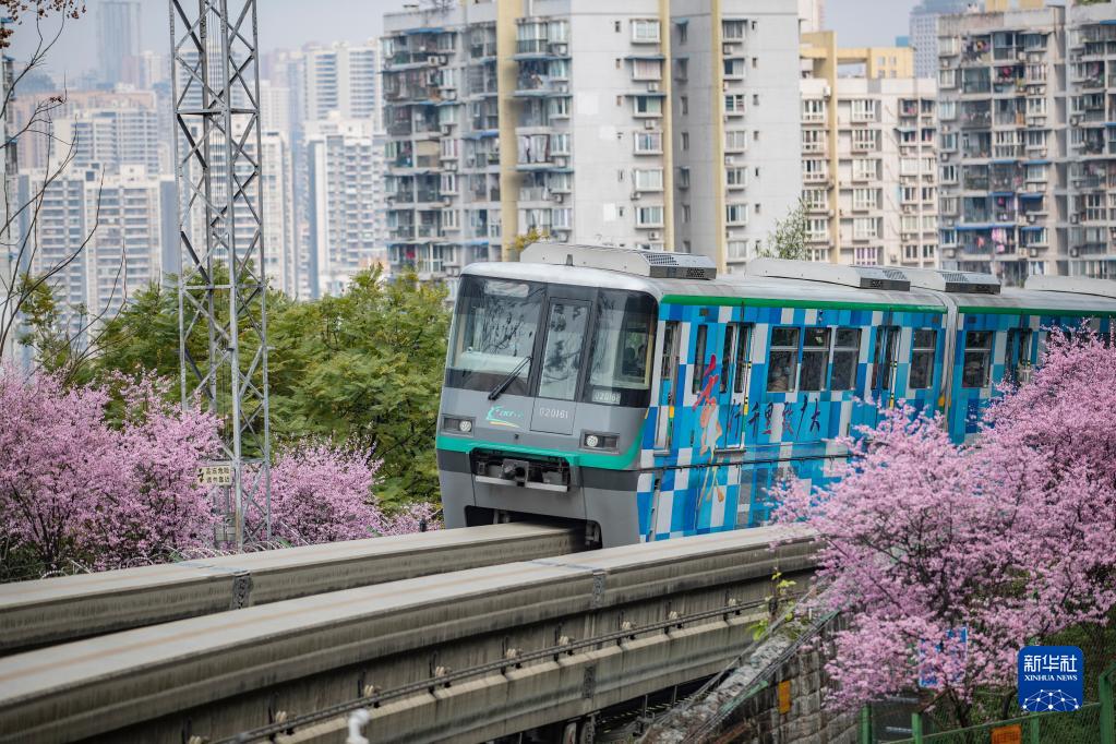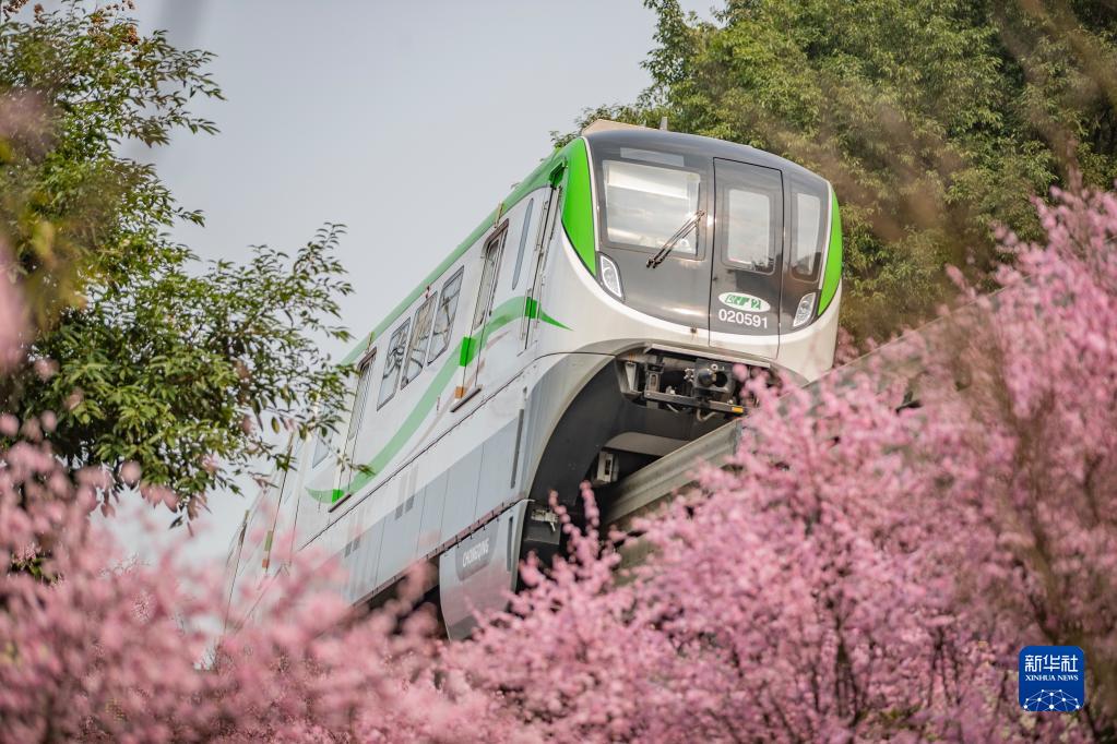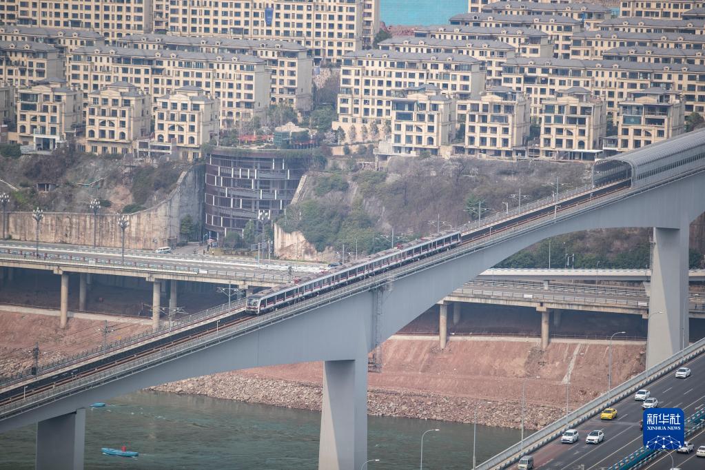 这是2月27日拍摄的运营中的重庆轨道交通2号线列车。