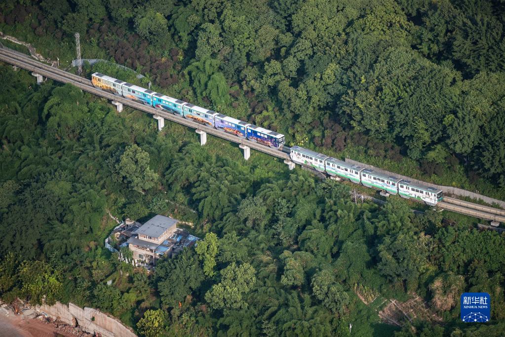 这是2022年7月13日拍摄的运营中的重庆轨道交通2号线列车。