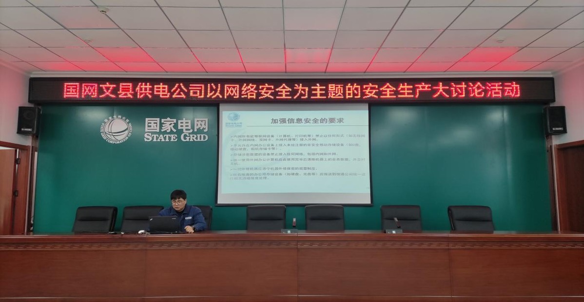 为了加强网络安全教育宣传,营造安全、健康、文明、和谐的网络安全。2023年3月7日,国网文县供电公司举办以“文明上网安全用网依法治网,共建共享网络安全教育”为主题的宣讲。