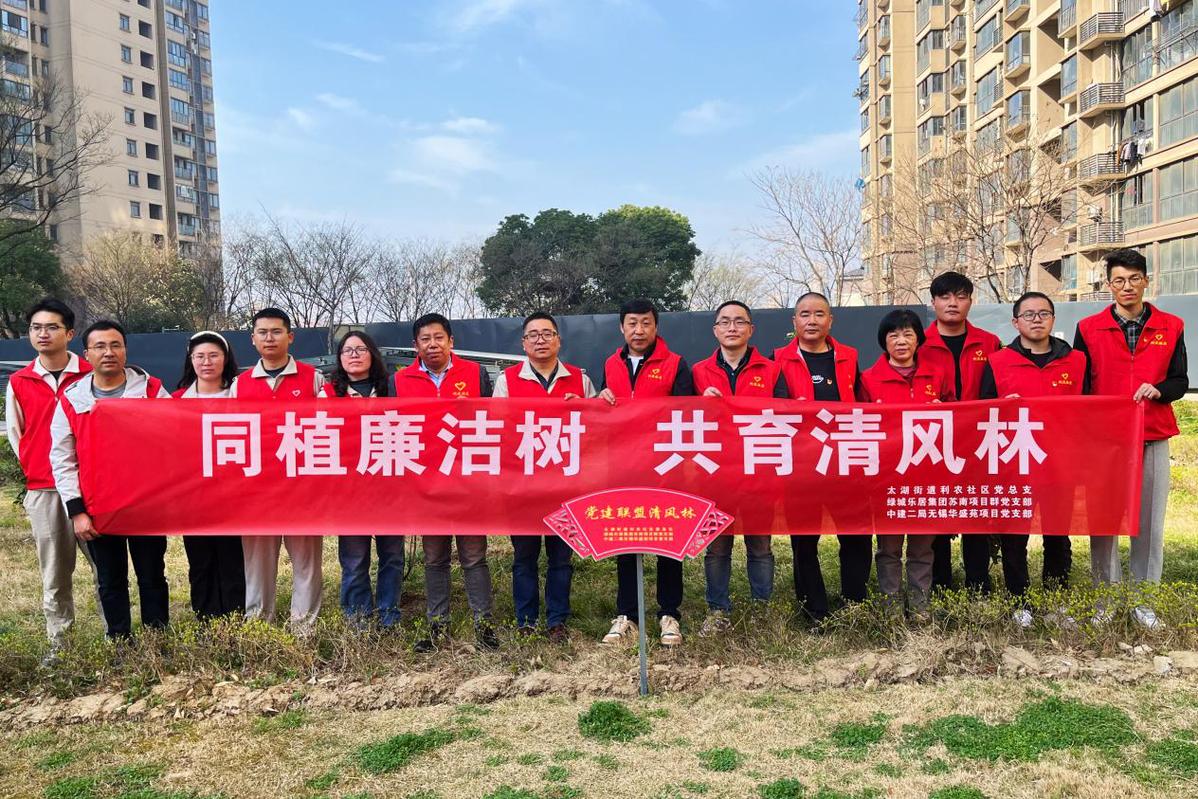 植树节来临之际,中建二局浙江分公司无锡华盛苑项目党支部联合无锡市经开区太湖街道利农社区党总支、绿城乐居集团苏南项目群党支部开展“同植廉洁树,共育清风林”党建共建主题植树节活动,凝聚党建合力,激发群团动能,推进廉洁文化建设走深走实。