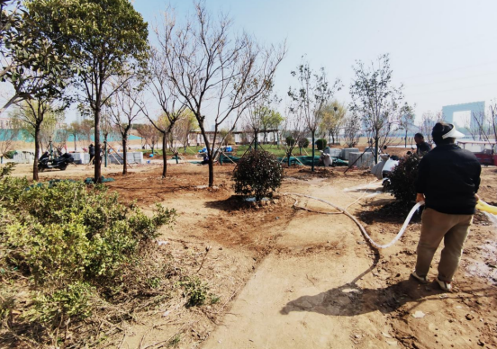 为了能将最好的一面献礼樱花节、呈现给各方游客,截止目前项目的绿化作业人数达到100人以上,全部员工正在紧锣密鼓的进行最后的绿化工程收尾工作。在岛上保留原有垂柳、栾树、桃树、女贞等苗木的基础上,优选观赏价值好、成活率较高、满足四季更替皆有花开的各类绿植,与淇河两畔的樱花遥相呼应,同时呈现山林、草地、水岸等多种景观形态。
