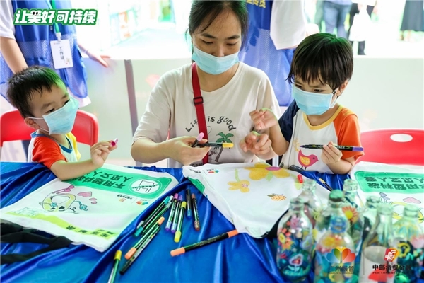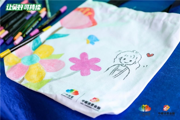 旧物新生,物尽其用。中邮消费金融还邀请了广州美术学院建筑艺术设计学院学生成为美好物语摊主,为市民朋友们带来可再生材料设计的产品。为使旧物焕发二次生命,现场设置了DIY专区,为市民朋友们提供绘画笔等改造物料,支持市民带领旧物前来参与涂鸦改造。摊位上,一片忙碌而温馨的景象,家长和小朋友围在一起,利用手中的画笔在帆布袋上用勾线、涂色,进行彩绘创作。