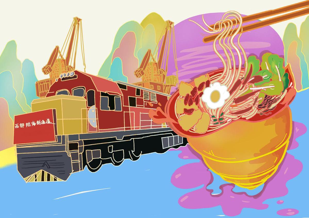 深化合作“国际港”,提升运输“硬实力”。为解决柳州螺蛳粉产业原材料运输问题,铁路部门不断优化货运运输方案,充分发挥南宁国际铁路港、沿海铁路的区位优势,持续加强深化与公路、企业、港口、海关等多方合作,为国内国际供应链产业链发展注入源源不断地动力,为螺蛳粉产业配套生产提供了安全快捷优质的物流服务。一列列银龙飞驰在西部陆海新通道上,把独特区位优势转化为开放优势、合作优势、发展优势。发达的铁路网络不仅助力中国味道“走出去”,还吸引了更多高尖技术人才“走进来”,为螺蛳粉产业乃至广西其他特色产业发展提供“智力支持”。