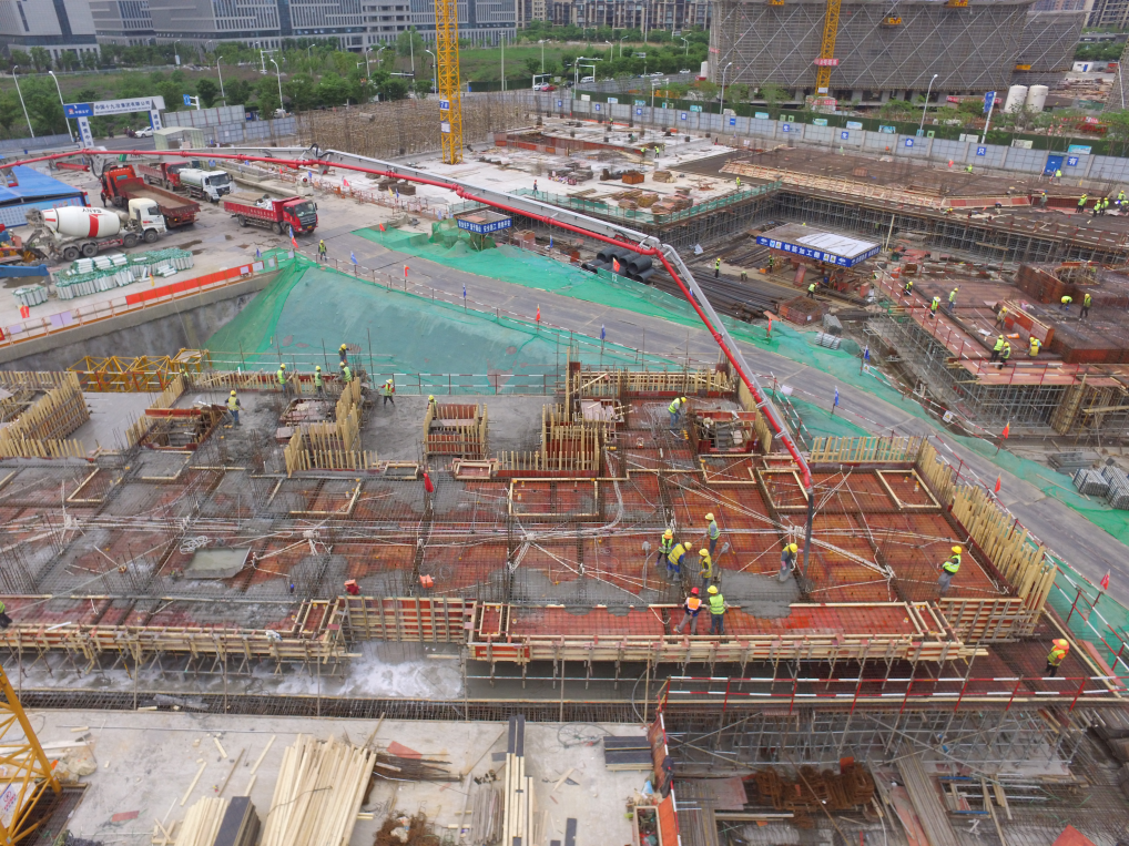 该项目位于南京市六合区,建设内容包括7栋高层住宅楼、1栋社区中心及1栋物业用房,总建筑面积为146000平方米。本次浇筑部位为B1号楼车库顶板,浇筑面积为490平方米,浇筑混凝土约122立方米。浇筑过程中,项目部科学筹划、精细管理,严格把控浇筑节奏,及时调配施工机械与材料,克服了场地紧凑、时间紧张等困难,在保安全、保质量的前提下,顺利完成了B1号楼车库顶板浇筑。至此,该项目所有主楼单体正负零以下主体结构施工全面完成,顺利进入地上结构施工阶段。