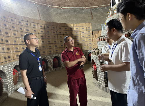 当天参观考察的第一站是康沟河酒业有限公司。在这里,考察团一行了解到什么是度夏头轮酒和酱香坤沙酒的制作过程。近年来,康沟河酒业充分发挥党组织的政治核心作用,积极探索非公企业党建创新,将党建融入中心、健全机制、压实责任。强化党的政治保障作用,为企业高质量发展保驾护航,因此,康沟河酒业被评为蔡庄镇优秀民营企业。
