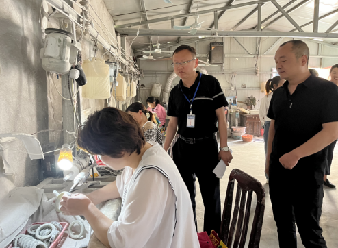 随后,考察团一行来到鹿村玉雕加工户家中,村民在轰鸣的机器声中切割石材,打磨、印染、抛光、一块块硕大的石料经过工人师傅的巧手加工,变成了美轮美奂的精品玉器。玉雕产业充分发挥龙头企业、产业基地带动作用,着力打造特色品牌,拓宽增收渠道。据悉,鹿村加工玉雕已有将近50年的历史。村里现有三分之一的农户、1000余人从事玉雕加工业,同时还吸纳周边村近千名村民就地就近就业,月人均收入6000元左右。