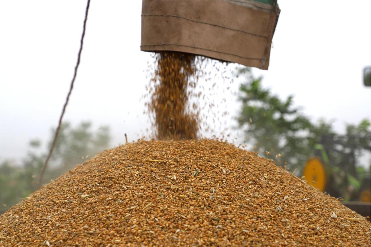 在西向镇行口村,大型收割机正在轰鸣作业。村民毋保卫一早就来到田地,看着自己成熟的小麦被及时收割,他长舒了一口气:“天晴了,村里找来农机给我们抢收小麦,电业局的服务队也来帮我们,我的2亩多地只用了30分钟就收完了。今天一收麦,我晚上睡觉也踏实了!”