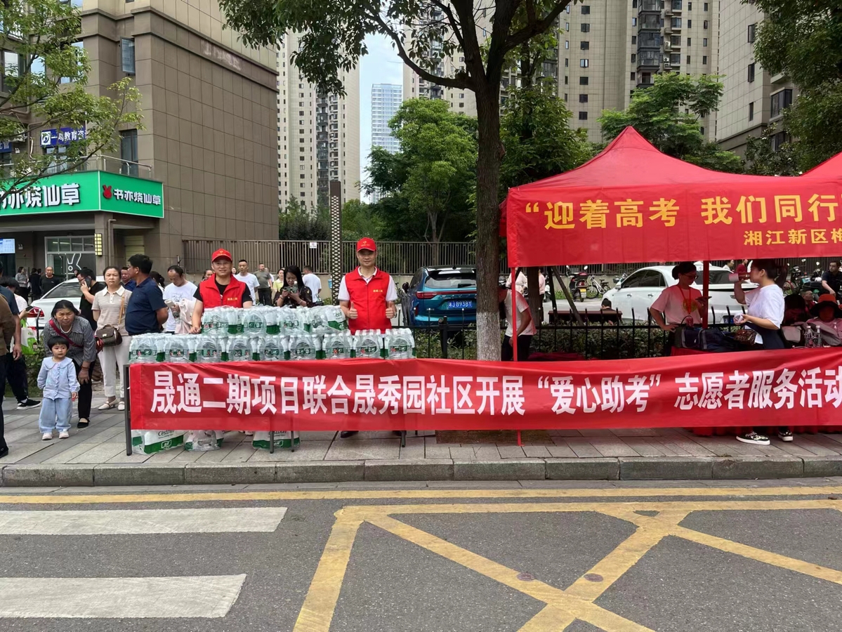 6月6日下午,中建三局一公司晟通梅溪湖二期项目联合晟秀园社区开展“爱心助考”志愿活动,为考场外驻守的考生父母、家人发放矿泉水,湿纸巾等物资,贡献企业的一份薄力,送一份清凉,伴爱心送考,让梦想飞翔。