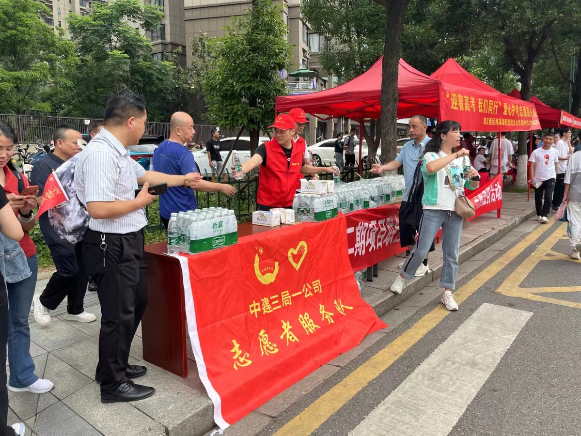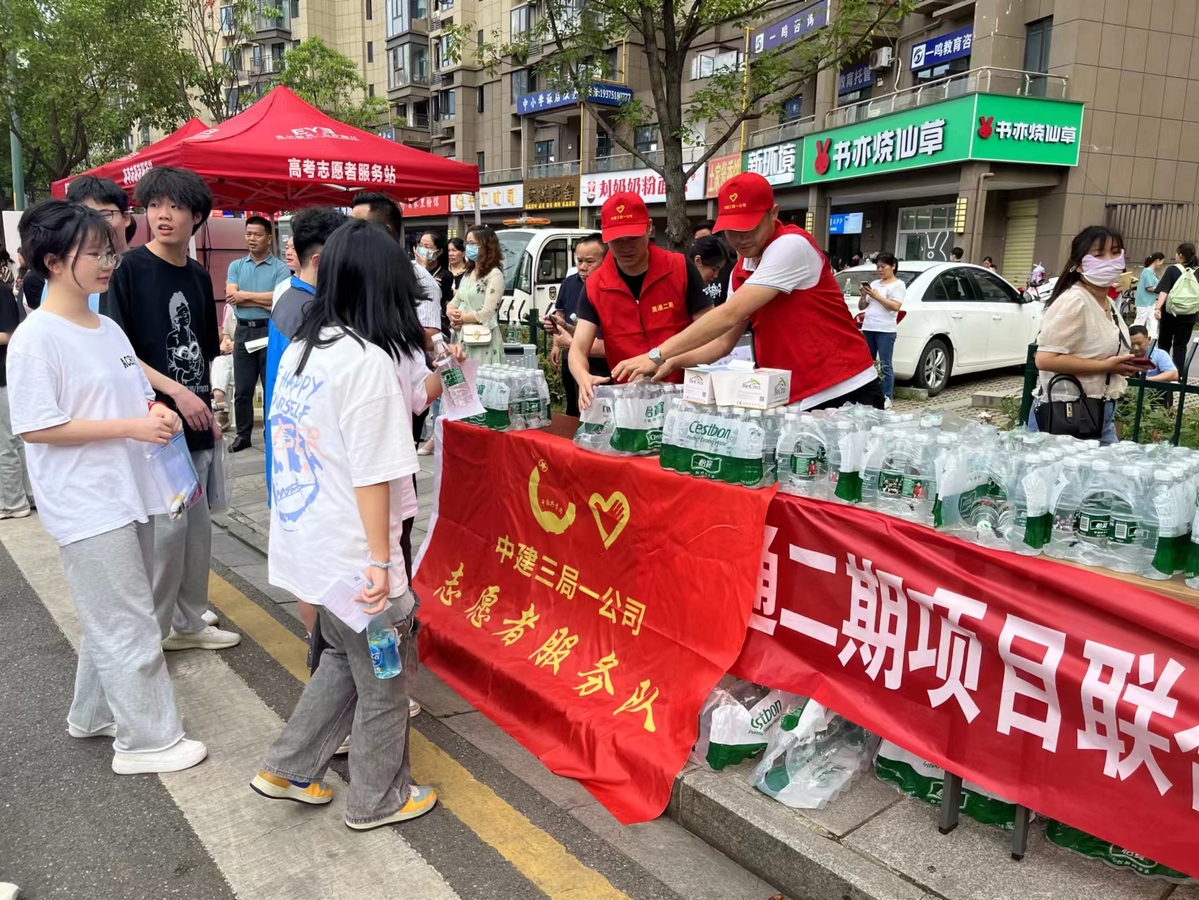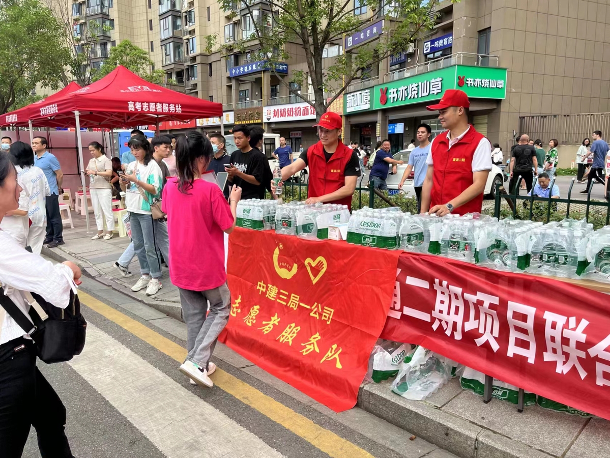为高考学子奉献一份爱心,传递一份真情,善用爱心服务广大考生和家长,为梦起航,祝考生们金榜题名。(图片由中建三局一公司授权提供)
