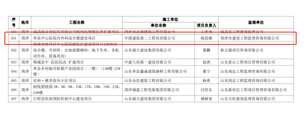 近日,山东省住房和城乡建设厅公布“2022年度山东省建筑施工安全文明标准化工地名单(房屋建筑工程)”公示名单,中建二局四公司山东分公司单县中心医院内外科综合楼建设项目获此殊荣。