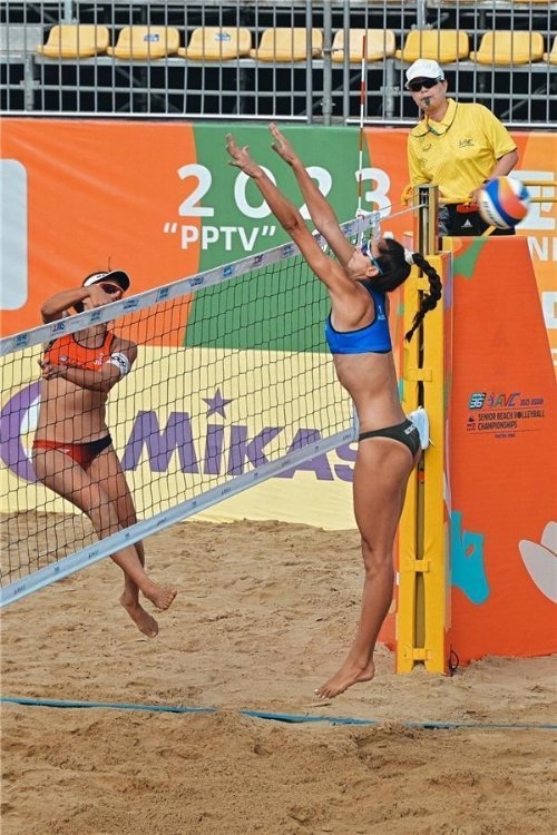 23日上午8点,2023年亚洲沙滩排球锦标赛(中国·平潭)揭幕战,是由来自日本1队的Ishii Miki/Mizoe Sayaka对战澳大利亚3队Milutinovic Jana、Fejes Stefanie。开局双方你追我赶,日本1队率先拿下23分得到第一局的胜利;然而,澳大利亚3队在第二局并没有给对手机会,在多次扣杀和发球得分后,以5分优势遥遥领先,扳回一城,让比赛进入第三局;最终,澳大利亚3队以2:1大比分领先日本1队拿下首场比赛的胜利。