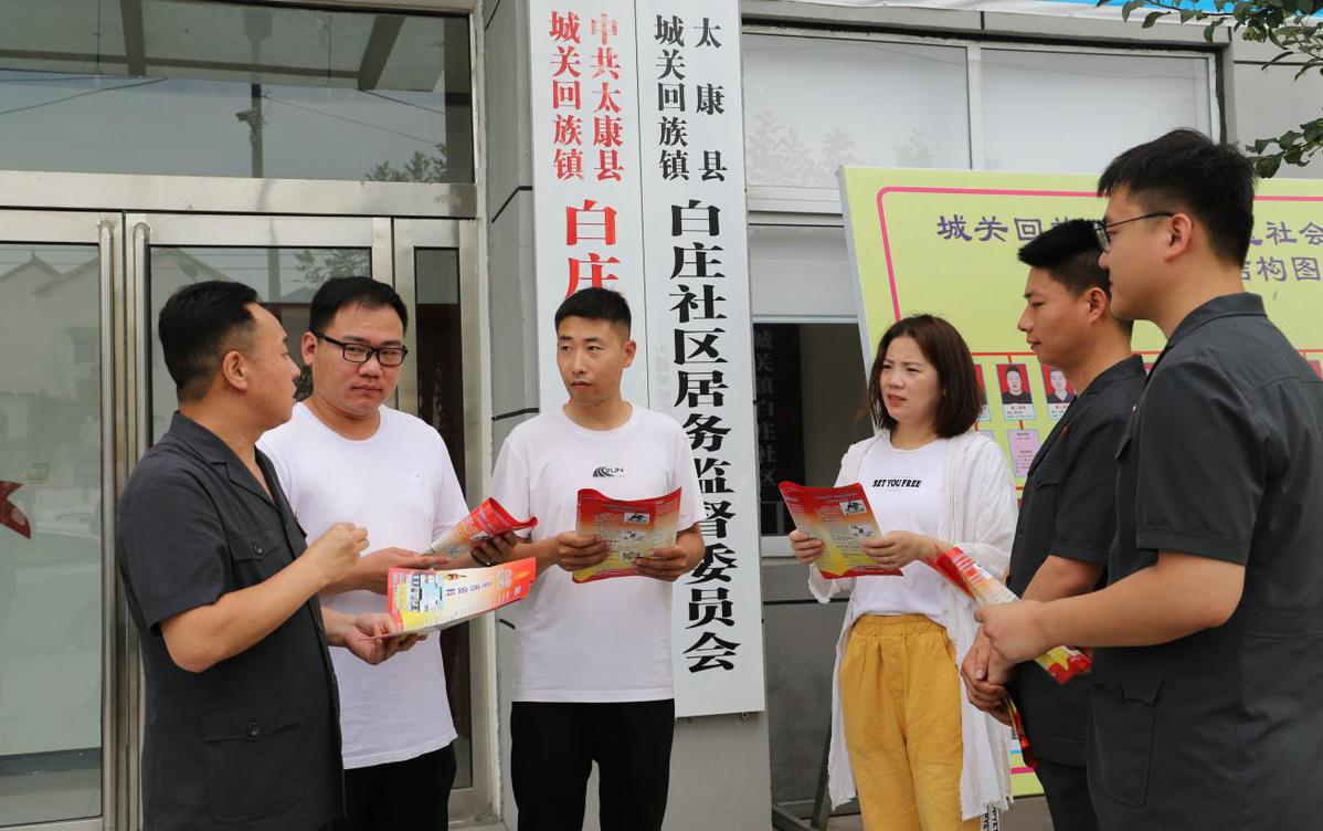 “如发现涉黑涉恶等违法犯罪线索,我们要积极举报揭发,自觉抵制相关违法犯罪活动……”6月29日上午,雨后初霁,河南省周口市太康县人民法院几名干警来到该县城关回族镇白庄社区,摆展板、发宣传页,向小区居民宣传起《中华人民共和国反有组织犯罪法》。
