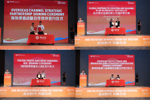 “燕谷坊以全谷物科技为核心竞争力,开创多个系列全谷物健康产品,同时积极拥抱国际国内双循环新发展格局,推动国际全谷物产业高质量发展。” 燕谷坊集团董事长何均国讲到。立足东南亚市场,全谷物产业有着广阔的发展前景。活动同步举办“燕谷坊海外渠道战略合作伙伴”、“TIKTOK青春新农人KOL”、“东方麦谷全球合伙人共创共享计划”、“海外供应链与品牌建设”战略合作签约仪式。签约双方将从多维度助力全谷物海外渠道蓬勃发展,加速燕谷坊集团全球出海布局,推动全谷物民族品牌出海进程。