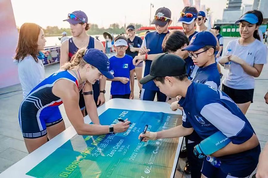 在参加此次活动的近百名国内青少年中,既包括赛艇爱好者也包括水环境保护者,最小的一位年龄仅8岁。“我们希望通过此次活动来影响更多的人,养成运动健康的生活方式,同时持续践行低碳环保理念。”主办方说,“我们还将从这些选手中选出代表,参加今年底在迪拜举办的COP28联合国气候变化大会。”
