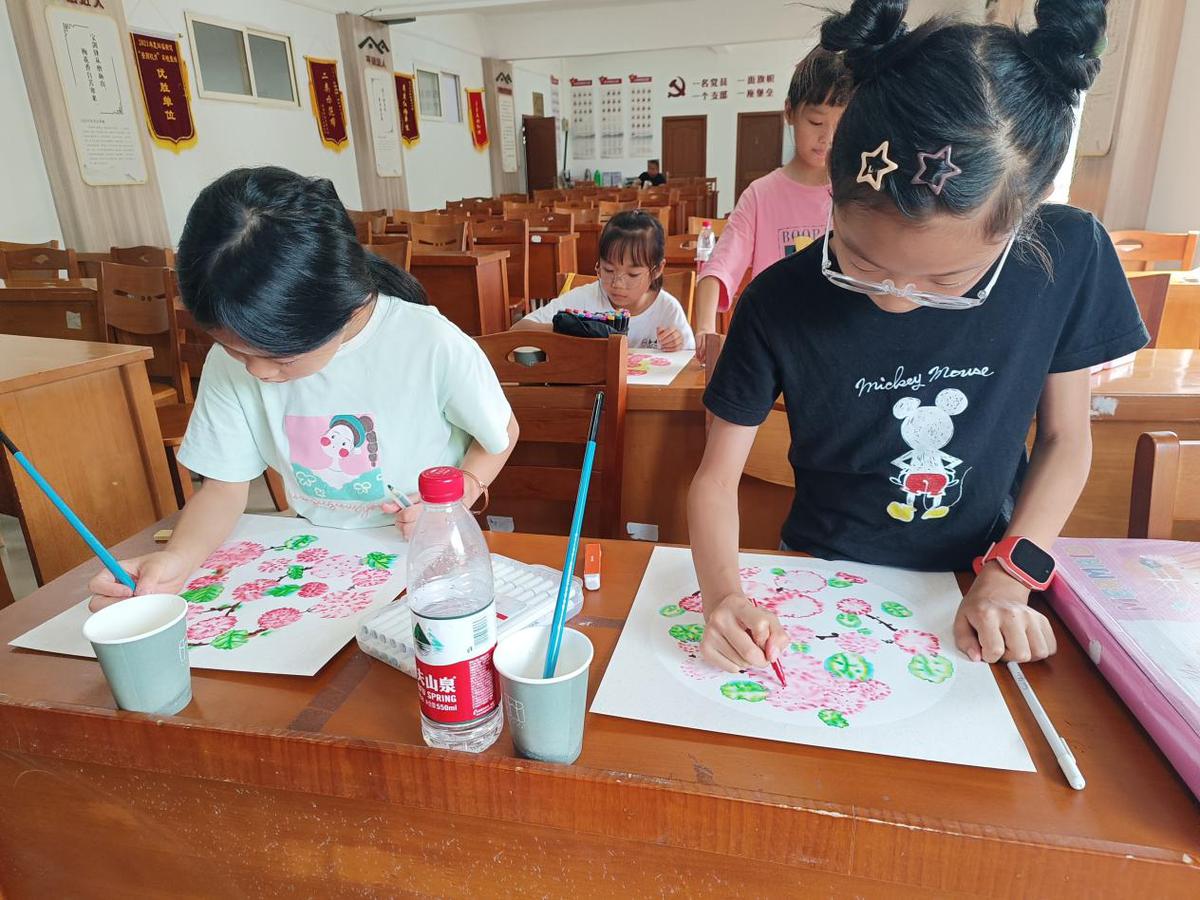 绘画课程中,在社区志愿者的带领指导和鼓励下,小朋友们纷纷用手中的画笔绘画自己喜欢的事物。彩笔的‘沙沙’声开始此起彼伏,经过一个多小时的时间,小朋友们都绘出了独属自己的关于夏日的记忆,一幅幅美丽的画卷在同学们的笔下铺展开来。