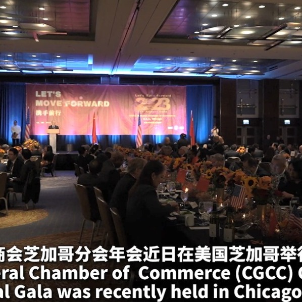 美国中国总商会芝加哥分会年会近日在美国芝加哥举行,中国驻美国大使谢锋、美国前驻华大使鲍卡斯、芝加哥市前副市长梅卡尔等近700人出席活动。中美各界人士强调双方应加强交流与合作,共同推动中美关系向前发展。(记者 张旻璐 视频 董浩)