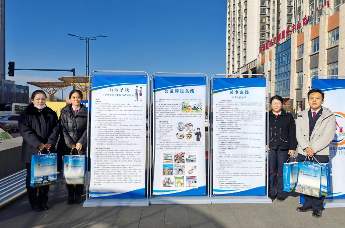 为提升公众对公益诉讼检察的社会认知度,持续深化公益诉讼检察宣传,营造广泛支持、众人积极参与的良好氛围。近日,鄂尔多斯市康巴什区人民检察院组织检察人员到康新街道办事处及周围商业街区开展公益诉讼检察主题宣传活动。
