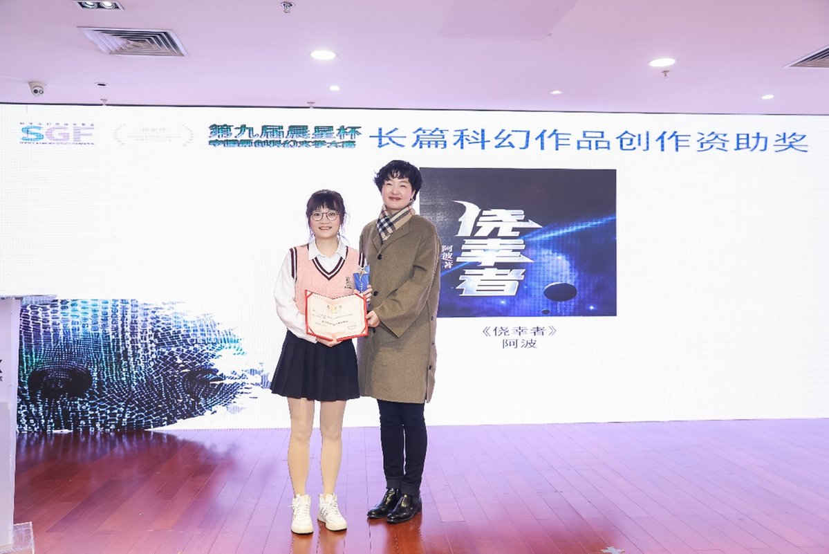 紧接着,主持人丁思桐公布了第九届“晨星杯”获奖名单,获得本届大赛最佳短篇科幻小说奖 的是《风中呢喃》 ,作者是大 Ben钟 ,夺得最佳中篇科幻小说奖 的是水手谷人 的作品《梦想的最远点》 ,摘得本届最佳长篇科幻小说奖 的是犬儒小姐 的《星愿》 ,本届长篇科幻作品创作资助奖 的唯一获得者是阿波 的《侥幸者》 。