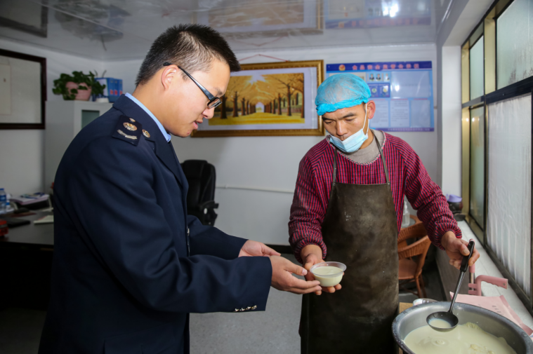 (天祝县税务局干部在德福隆豆腐坊了解生产经营情况,进行涉税辅导。)