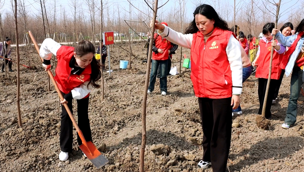 春回大地万物苏,3月12日,植树节当天,河南省信阳市淮滨县妇联组织该县巾帼志愿者在马集镇淮滨县苗圃场郭集分场开展义务植树活动。