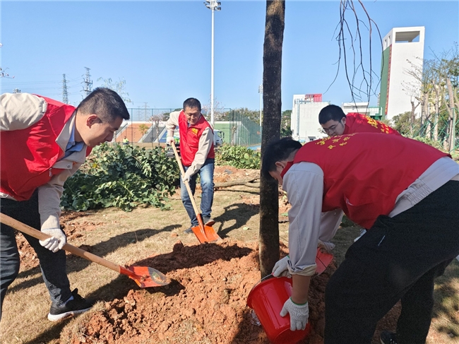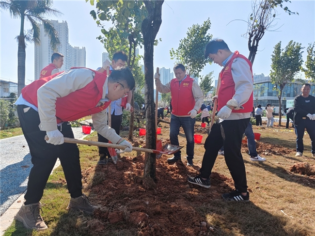种一片绿色,溢一片春光。宝安团区委、新桥街道及华南分公司志愿者围绕新桥街道进行了分组分工,扛苗散苗、挥锹铲土、挖坑栽树、盖土浇水,活动现场一片热火朝天的劳动景象,挥铲之间,大家种下的70余株绿苗迎风而立,焕发勃勃生机,同时也在志愿者心中种下了生态文明建设的种子。