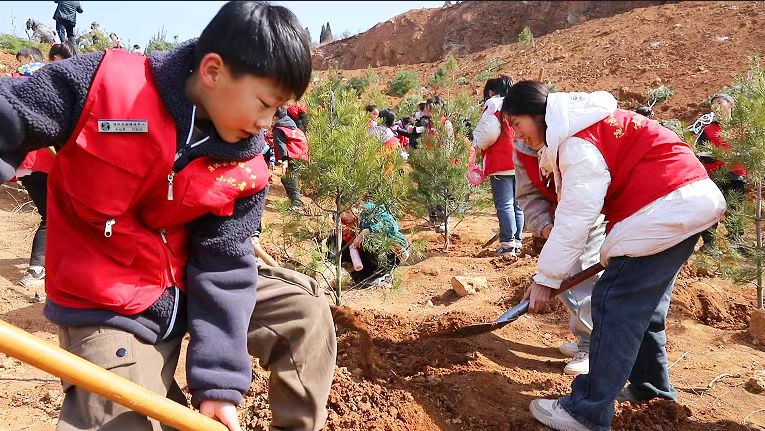 在主会场坡头乡韩家坑村上洼钾长石义务植树点,大家热情高涨,分工协作,扶正树苗、挥动铁锹、铲土入坑、灌溉浇水,有条不紊地完成植树各个工序,呈现出一派热火朝天的景象。经过一番辛勤劳作,一株株树苗稳稳扎根土壤,在春风中昂然挺立,焕发出勃勃生机。