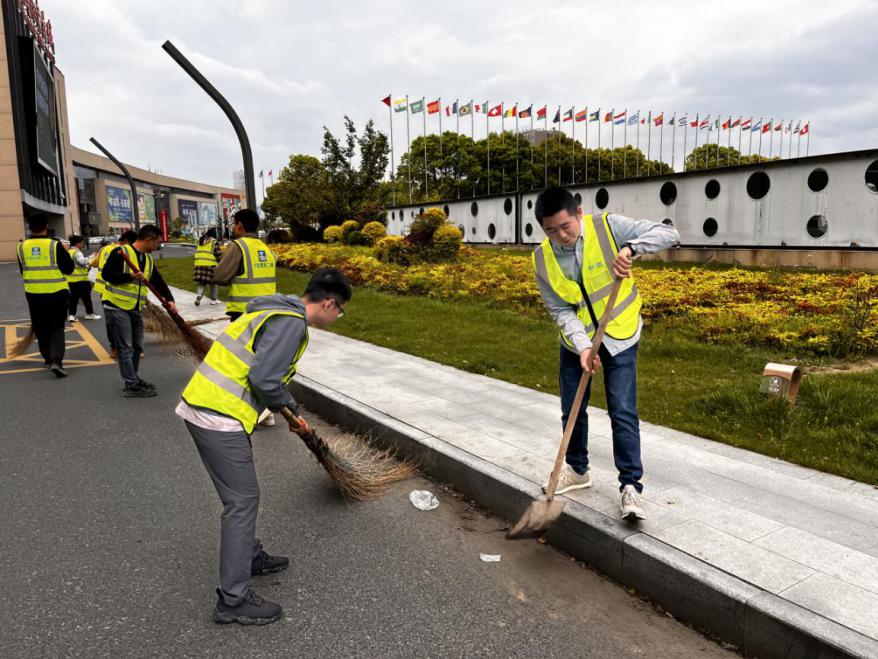 活动中,为进一步提高农民工对相关法律法规及政策信息的知晓程度,项目一部分党员志愿者来到施工现场,专心的为农民工讲解法律知识。另一部分党员志愿者,来到中国叠石桥国际家纺城南侧马路清扫,他们手拿扫把、铁锹、垃圾袋等工具,认真清扫马路,看到纸屑果皮、塑料瓶、塑料袋、烟头等垃圾主动捡起,充分展现出了不怕脏、不怕苦、不怕累的志愿服务精神。