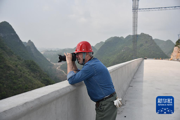戴高乐多次来到中国,这次是他第二次到贵州,主要参与近期由中国文化艺术发展促进会、贵州交通建设集团有限公司等联合主办的贵州大桥专题拍摄活动。一路上,他和多位中国摄影师一起,深入多座在建的世界级大桥施工一线,感受“中国桥梁之魅”。